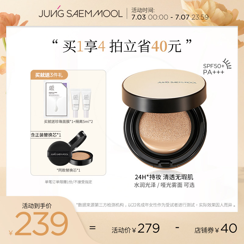 券 50元销量300【雾面持久】郑瑄茉柔焦气垫持久无瑕轻薄保湿粉扑气垫bb霜控油