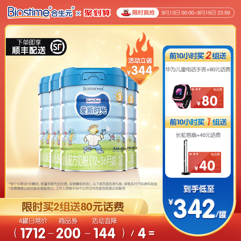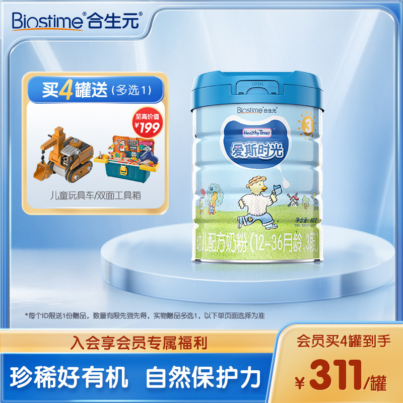券 200元销量76【过年不打烊】合生元HT爱斯时光有机幼儿配方奶粉3段4罐有机