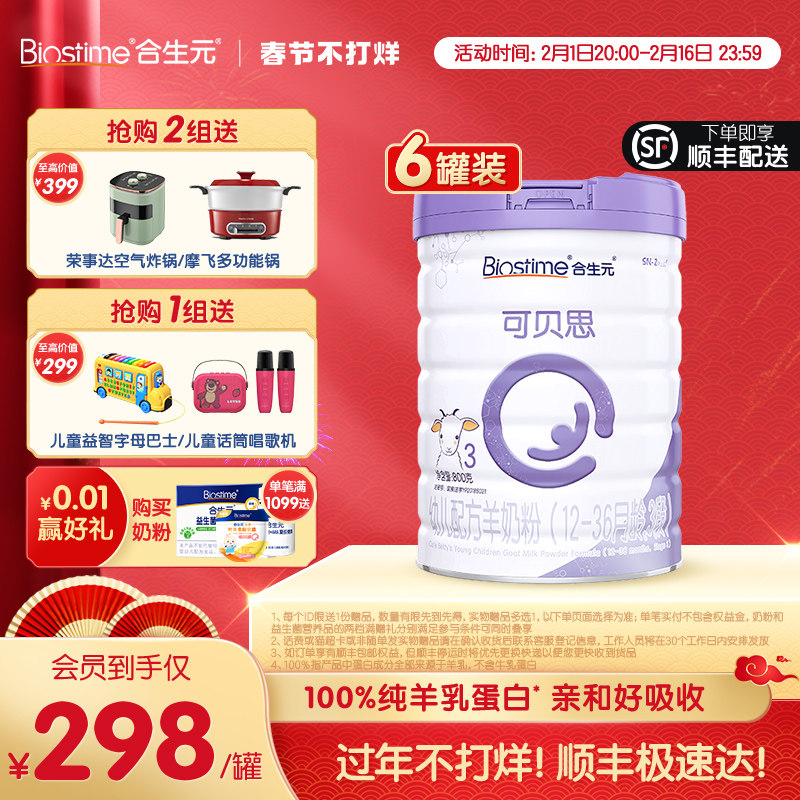 【过年不打烊极速达】合生元可贝思羊奶粉3段800g6罐纯羊乳蛋白
