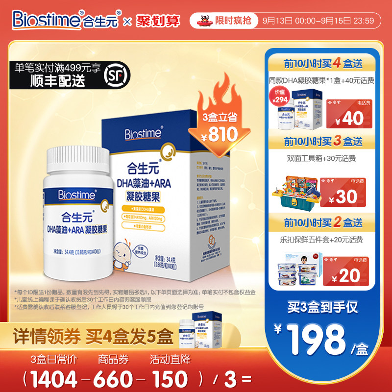 券 146元销量50合生元DHA海藻油滴剂特含ARA凝胶糖果儿童孕妇新生儿婴儿宝宝专用