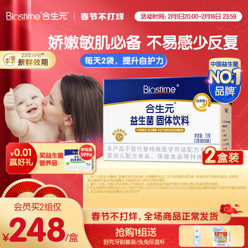 券 250元销量100【过年不打烊】合生元白金版益生菌36袋*2盒含M-16V敏护舒缓菌