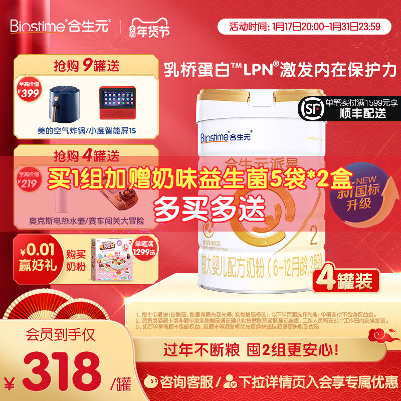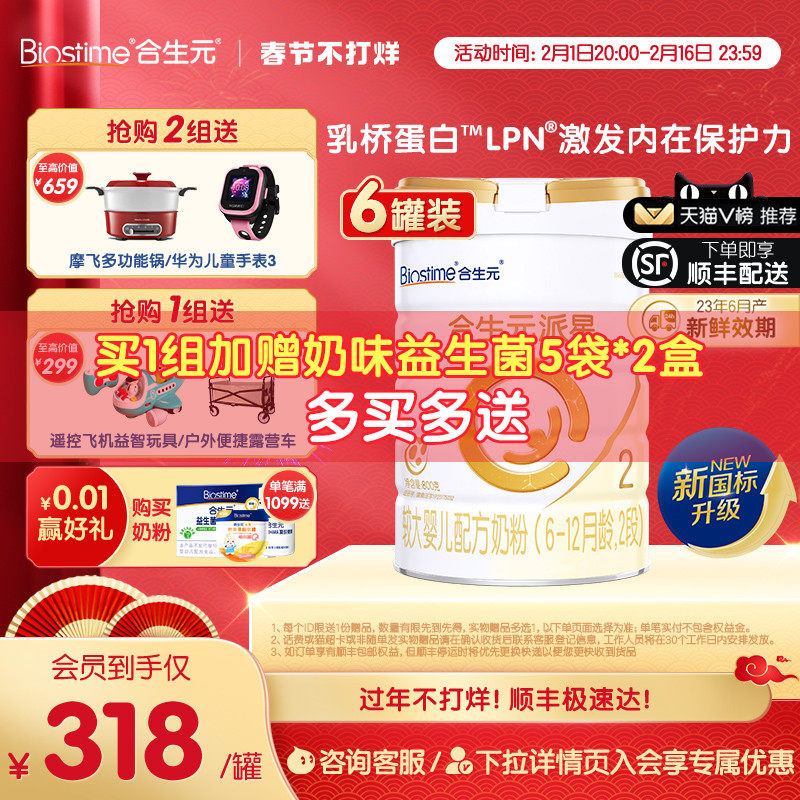 券 200元销量50[过年不打烊极速达]合生元派星新国标较大婴儿2段800g6罐乳桥蛋白