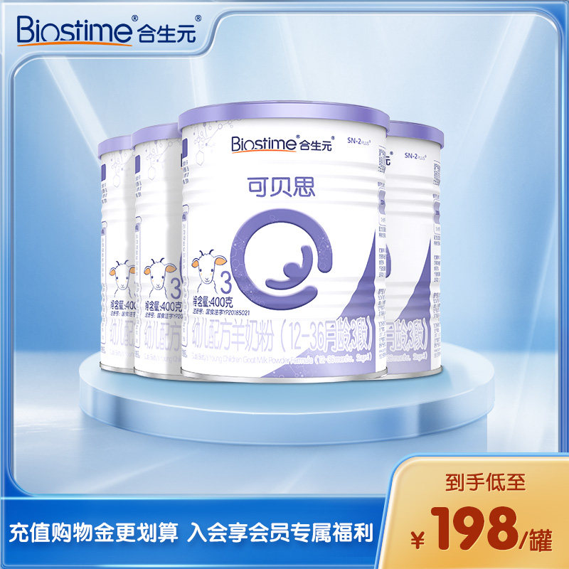 券 200元销量3合生元可贝思羊奶粉幼儿100%纯羊乳蛋白进口奶粉3段400g4罐