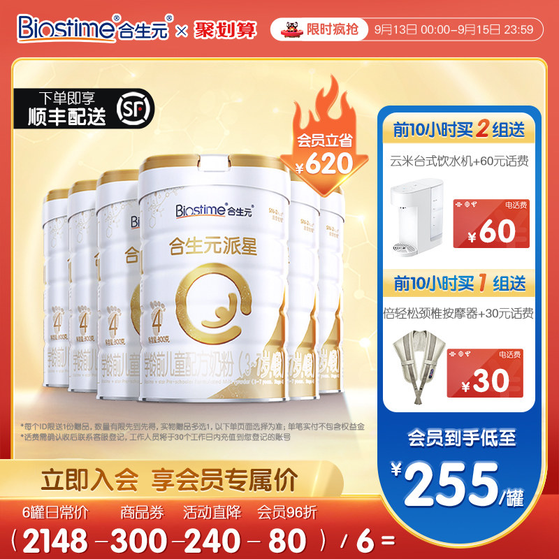 券 300元销量100合生元派星学龄前儿童配方牛奶粉4段6罐