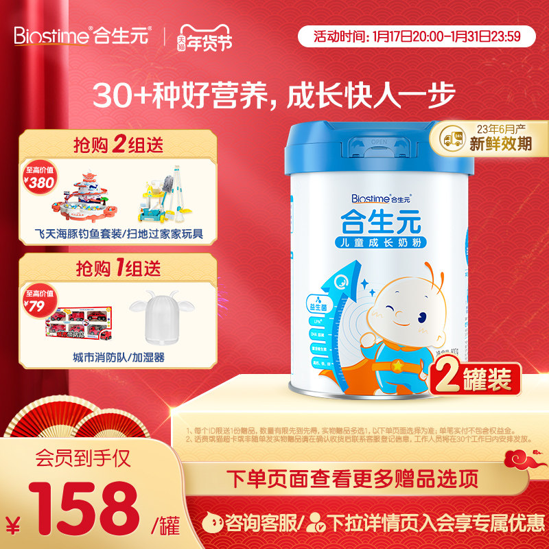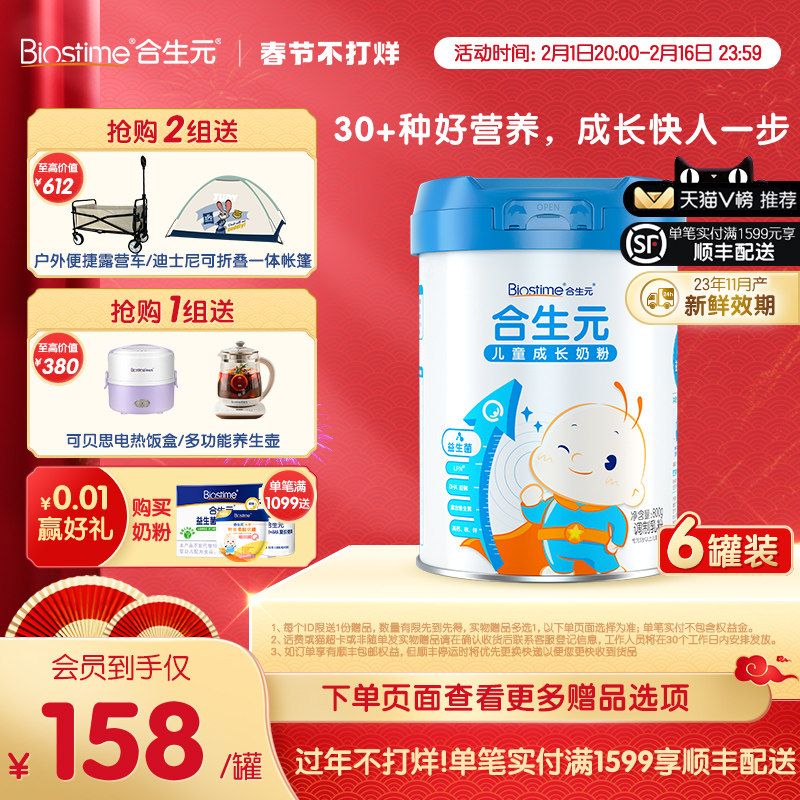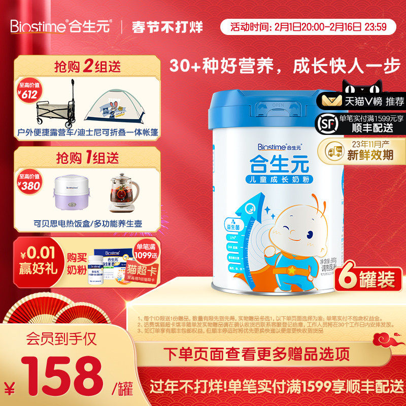 券 150元销量50【过年不打烊】合生元贝塔星乳清蛋白儿童成长牛奶粉4段800g6罐