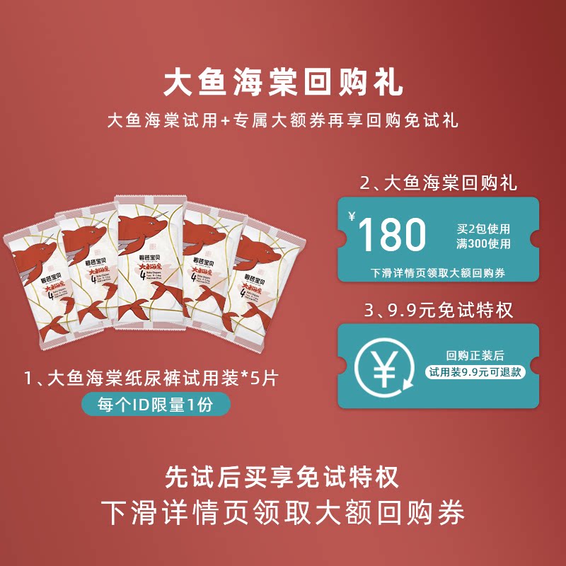 券 60元销量3000【回购免试礼】碧芭宝贝大鱼海棠纸尿裤拉拉训练裤试用装*5片
