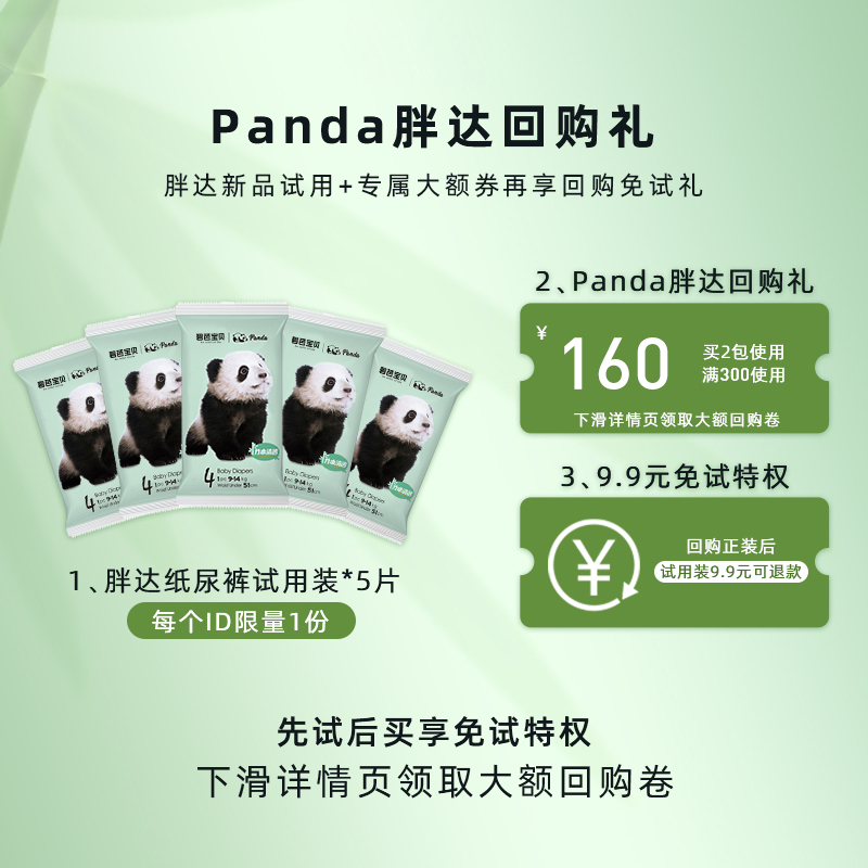 券 10元销量3000【回购免试礼】碧芭宝贝Panda胖达纸尿裤拉拉训练裤试用装*5片