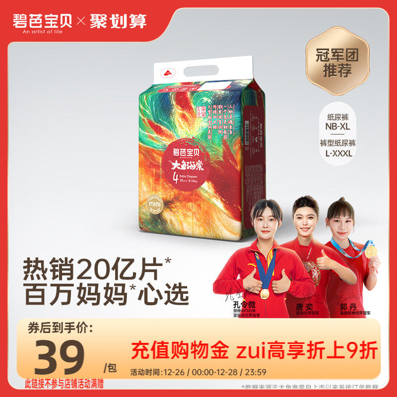 券 261元销量10000碧芭宝贝大鱼海棠mini纸尿裤拉拉训练裤新生婴儿超薄透气NB-3XL码