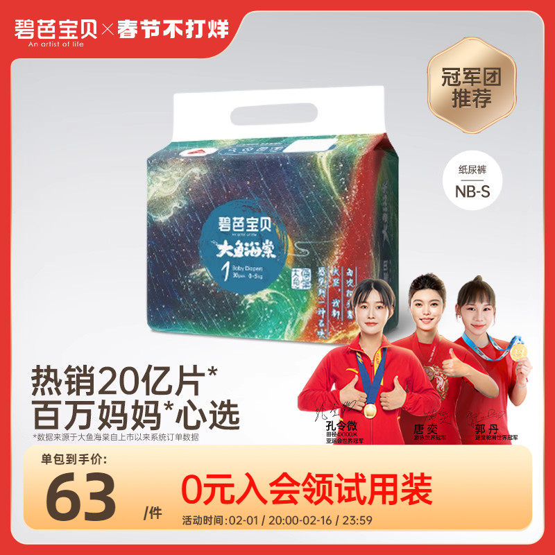 券 7元销量3000碧芭宝贝大鱼海棠婴儿纸尿裤超薄柔软透气新生儿专用NB30片*2/S*1