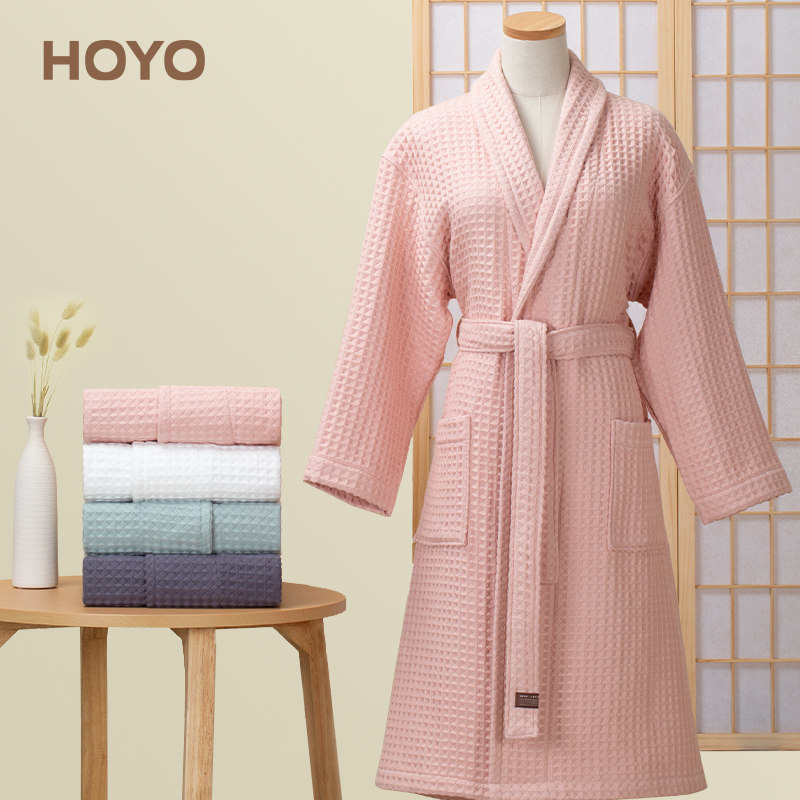 日本hoyo和颜浴袍纯棉毛巾料长款男女家用吸水速干全棉情侣款浴衣