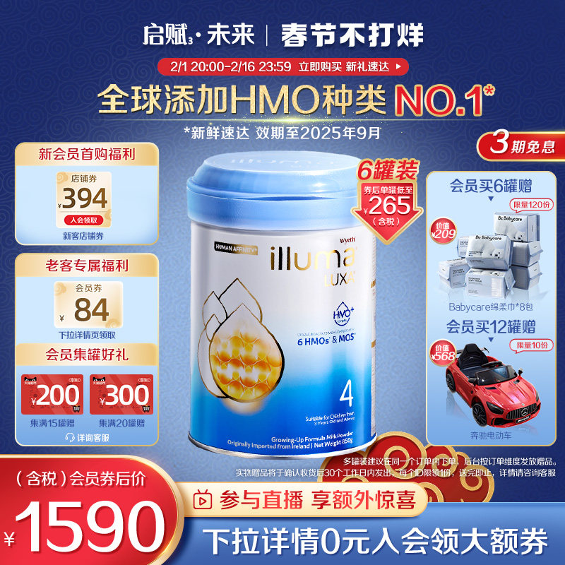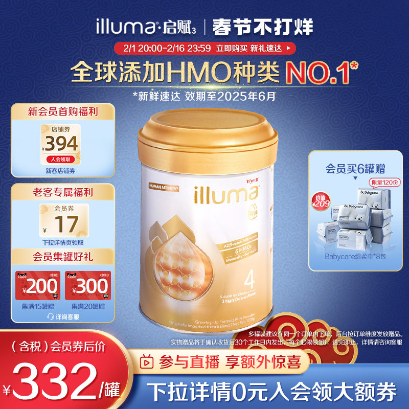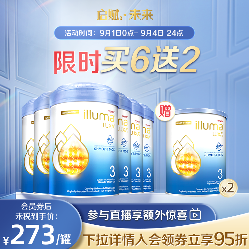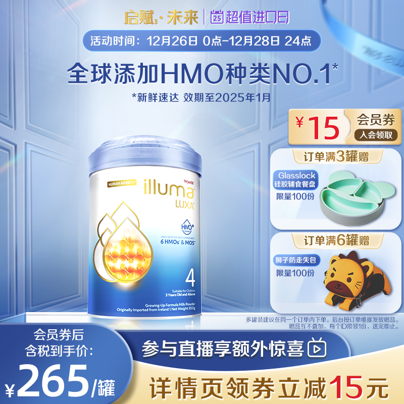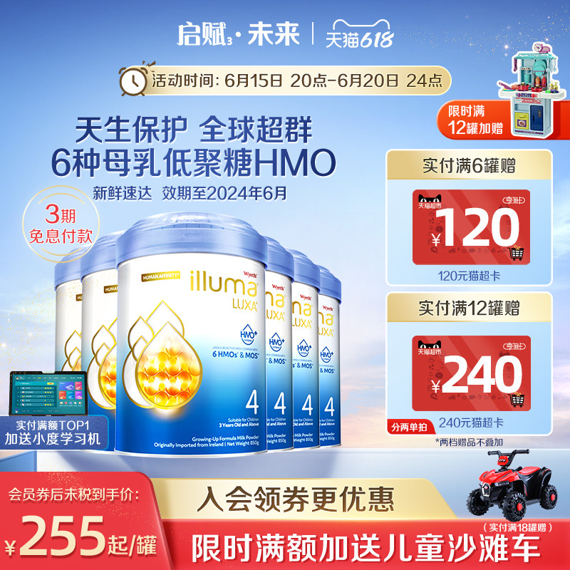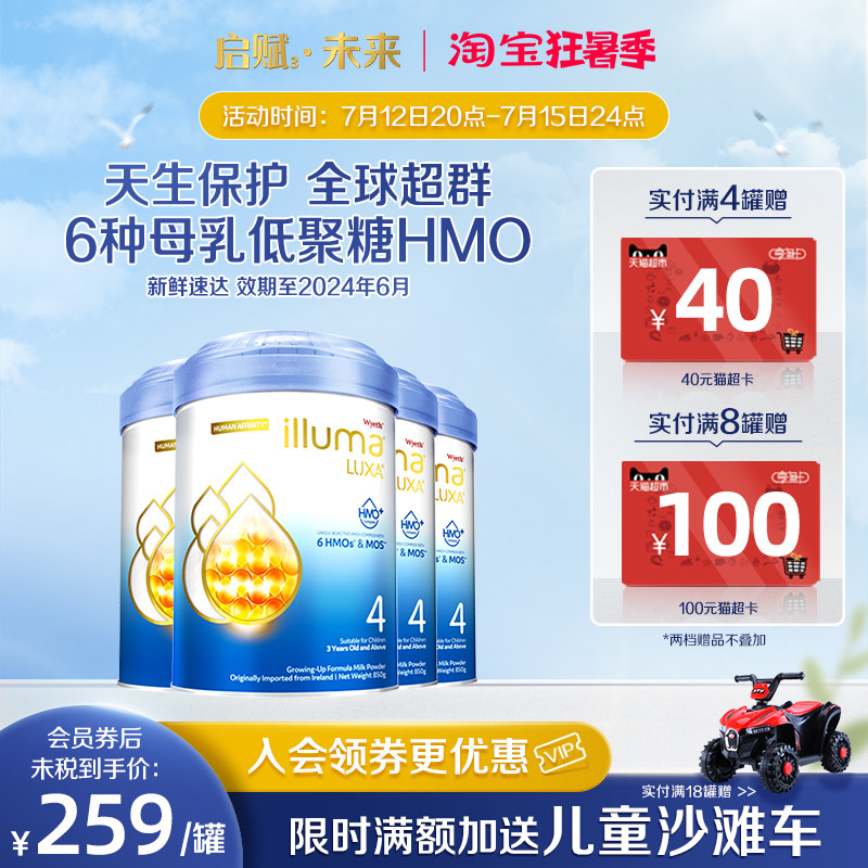 券 369元销量50【6罐】惠氏启赋未来4段6HMO进口婴幼儿奶粉配方850g官方旗舰店