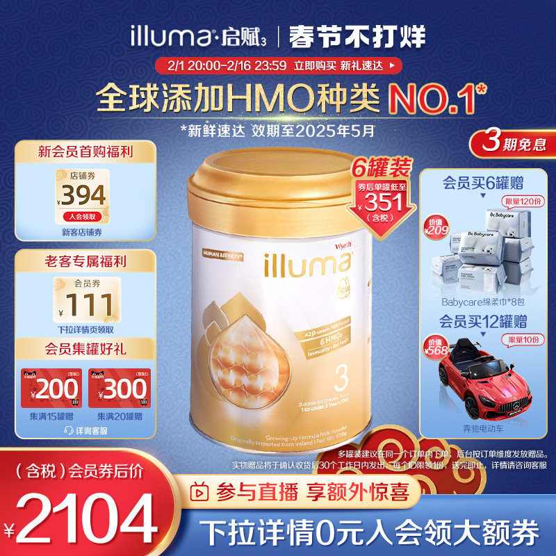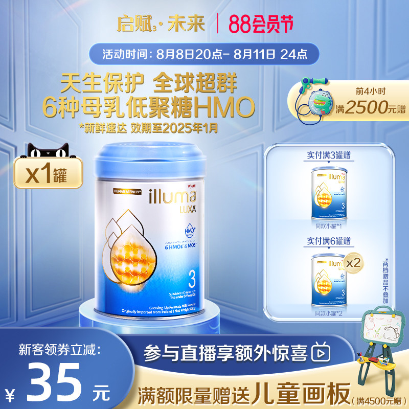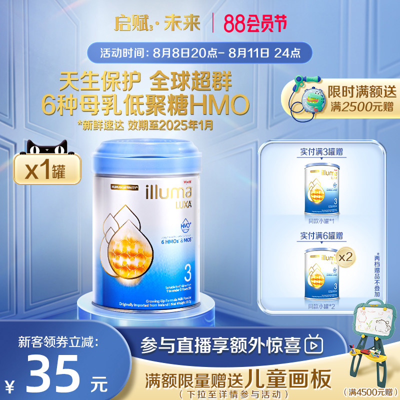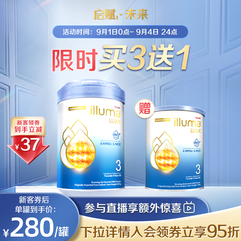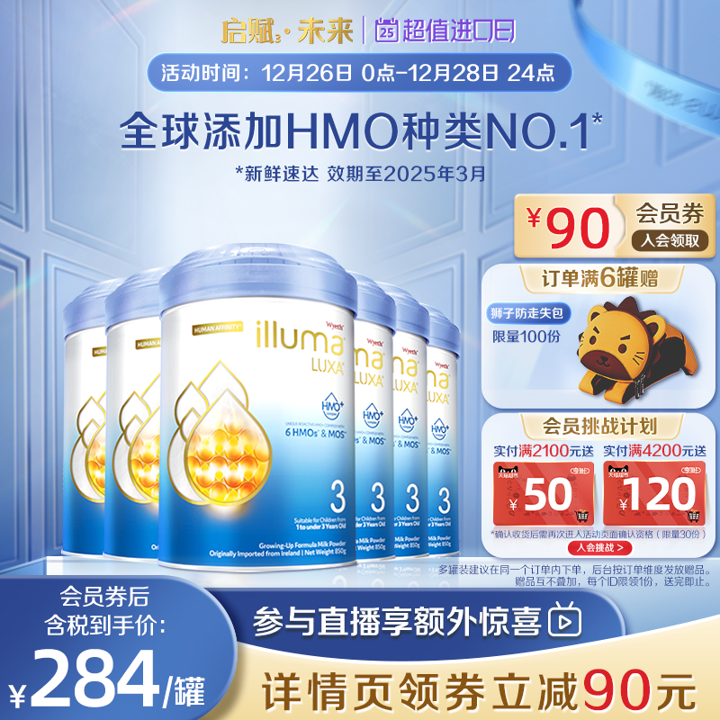 券 254元销量50【6罐】惠氏启赋未来3段6HMO配方婴幼儿奶粉dha婴儿新生850g