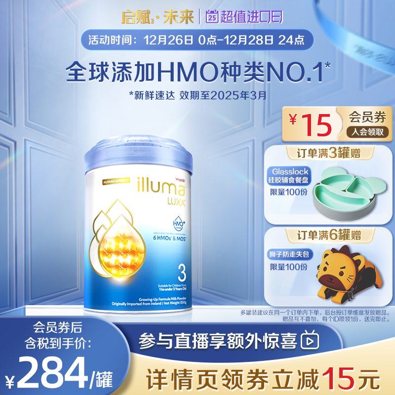 券 17元销量100惠氏启赋未来3段6HMO配方婴幼牛奶粉dha婴儿新生850g爱尔兰进口