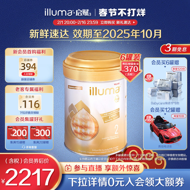 券 258元销量10【6罐】惠氏启赋a2奶粉6HMO配方2段高端婴幼儿牛奶粉850g官方正品