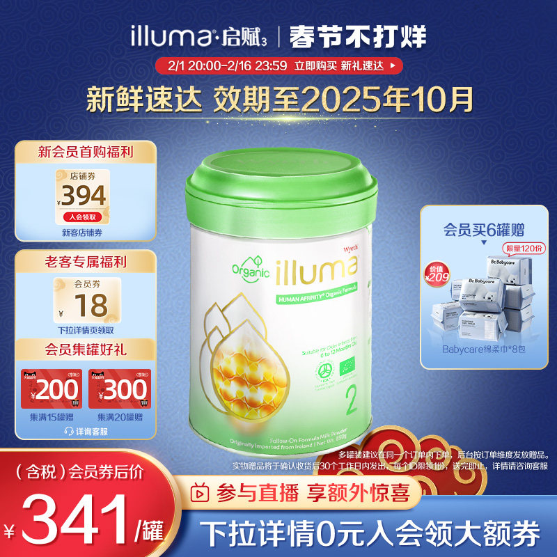 券 18元销量10惠氏启赋2段有机奶粉婴儿新生儿6-12月爱尔兰进口850g 官方旗舰店