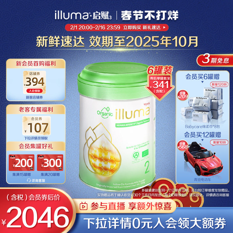 券 107元销量10【6罐】惠氏启赋2段有机奶粉婴幼儿新生6-12月850g官方旗舰店
