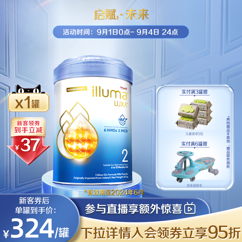 券 36元销量10惠氏启赋未来2段6HMO配方新生婴幼儿进口牛奶粉850g官方旗舰店