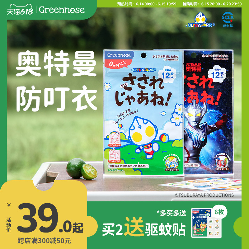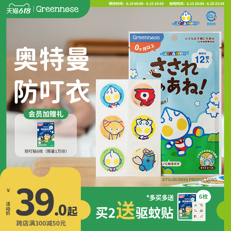 券 3元销量8000绿鼻子奥特曼防叮贴联名植物香薰精油贴儿童送驱蚊贴蚊子防蚊用品