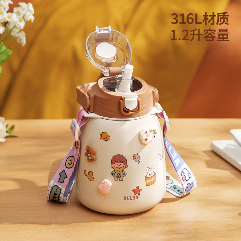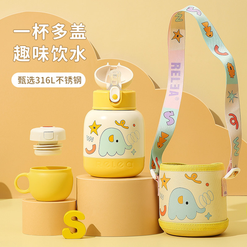 券 20元销量1000儿童吸管保温杯女高颜值316L不锈钢大容量男孩便携水壶大肚水杯子