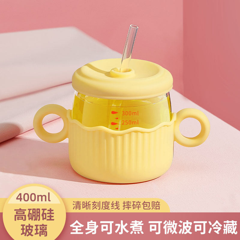 券 10元销量1000牛奶杯儿童刻度吸管玻璃喝奶杯宝宝水杯微波炉可加热冲奶粉专用杯