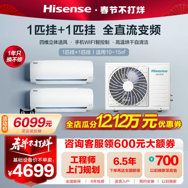 券 400元销量10海信一拖二空调挂机1匹1.5匹2匹3匹p家用1拖2壁挂式变频中央空调
