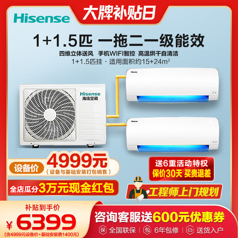 券 400元销量300海信一拖二空调挂机1匹1.5匹2匹3匹p家用1拖2壁挂式变频中央空调