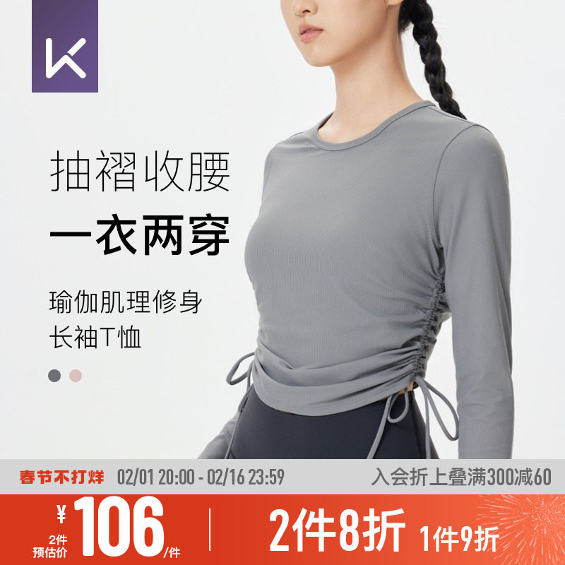 券 10元销量100Keep速干瑜伽服女运动上衣修身高弹可调节T恤普拉提跑步健身长袖