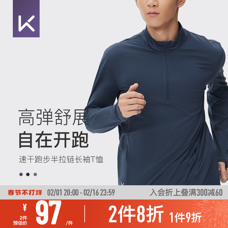 券 10元销量500Keep男子半拉链运动长袖单向导湿健身衣速干透气跑步上衣T恤秋冬