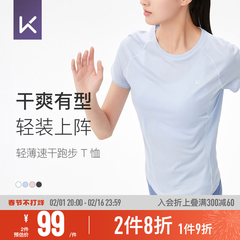 券 10元销量100Keep速干运动短袖t恤女修身瑜伽健身房跑步T恤罩衫户外透气上衣夏