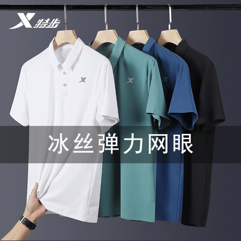 券 20元销量10000特步短袖T恤男夏季翻领弹力速干透气健身t上衣男士冰丝运动Polo衫
