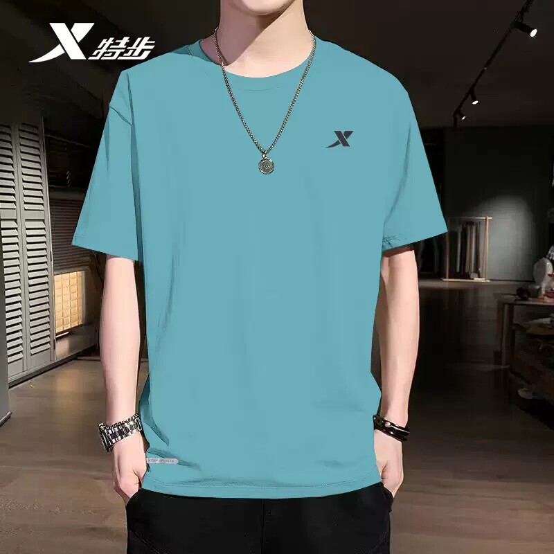 券 11元销量100特步短袖男夏季运动t恤宽松跑步速干衣透气半袖冰丝体恤男装上衣