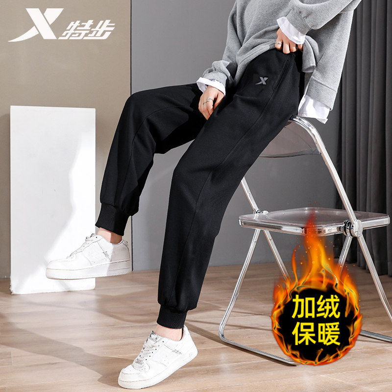 券 10元销量9特步运动裤女冬季加绒女裤束脚针织运动长裤宽松显瘦卫裤裤子女款