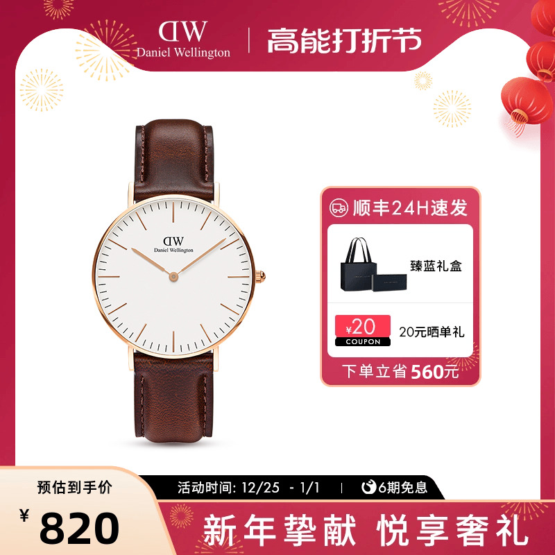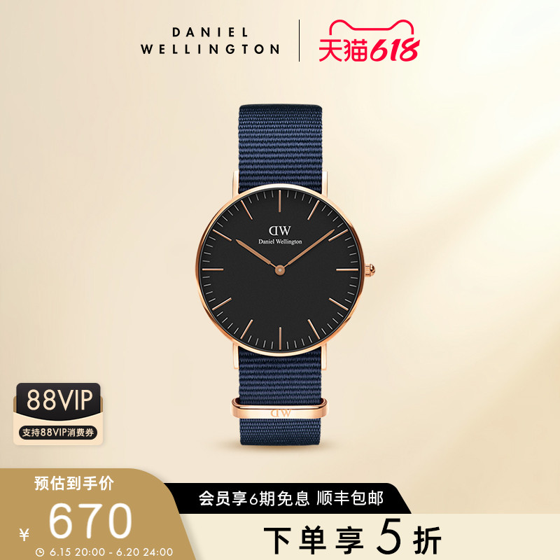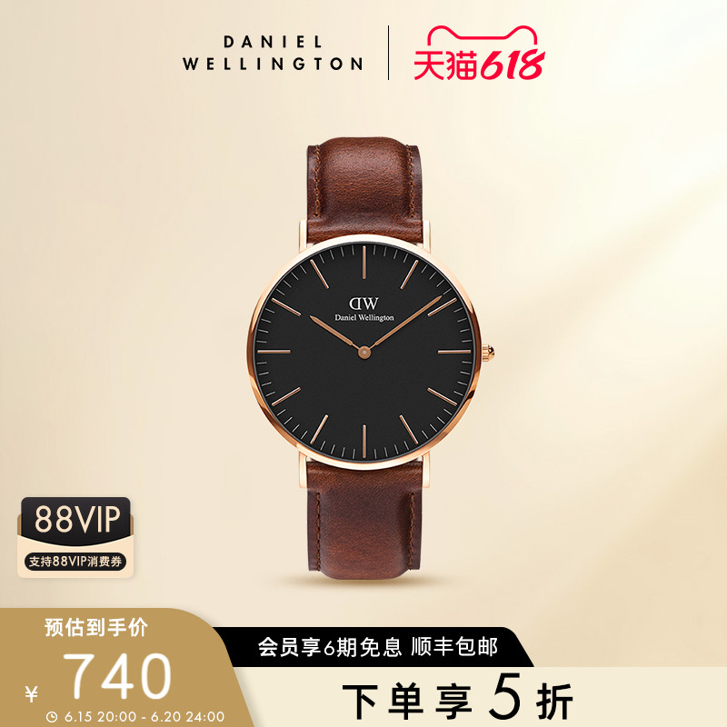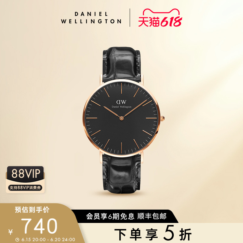 券 480元销量8【6折秒杀】DW手表男款 CLASSIC系列经典皮质石英腕表 丹尼尔惠灵