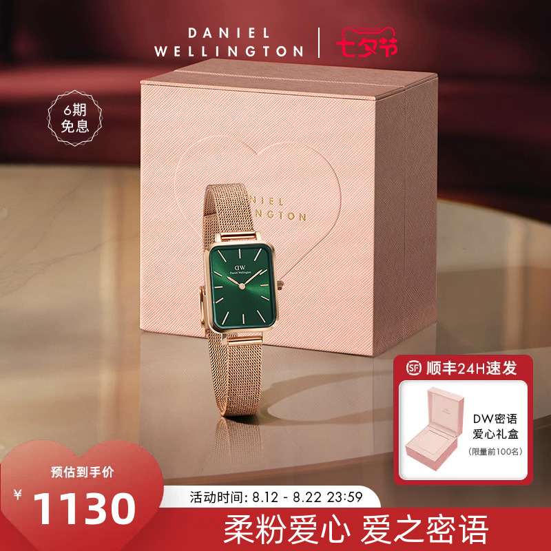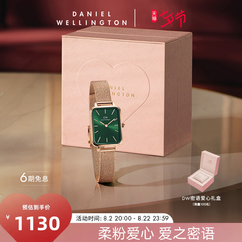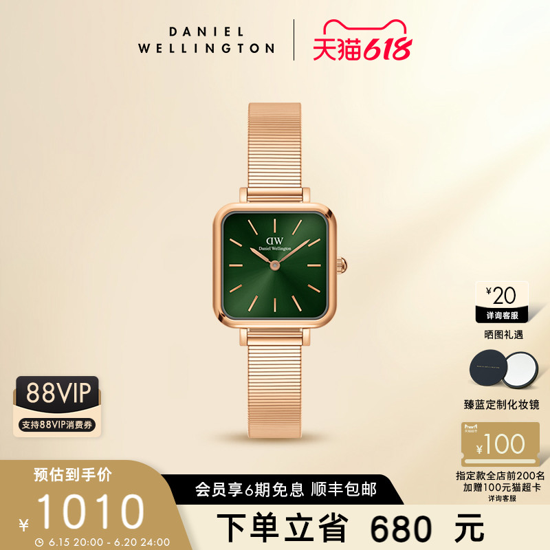 券 440元销量100【限时6折】dw手表女 QUADRO系列 22×22mm复古方形小绿表钢琴表