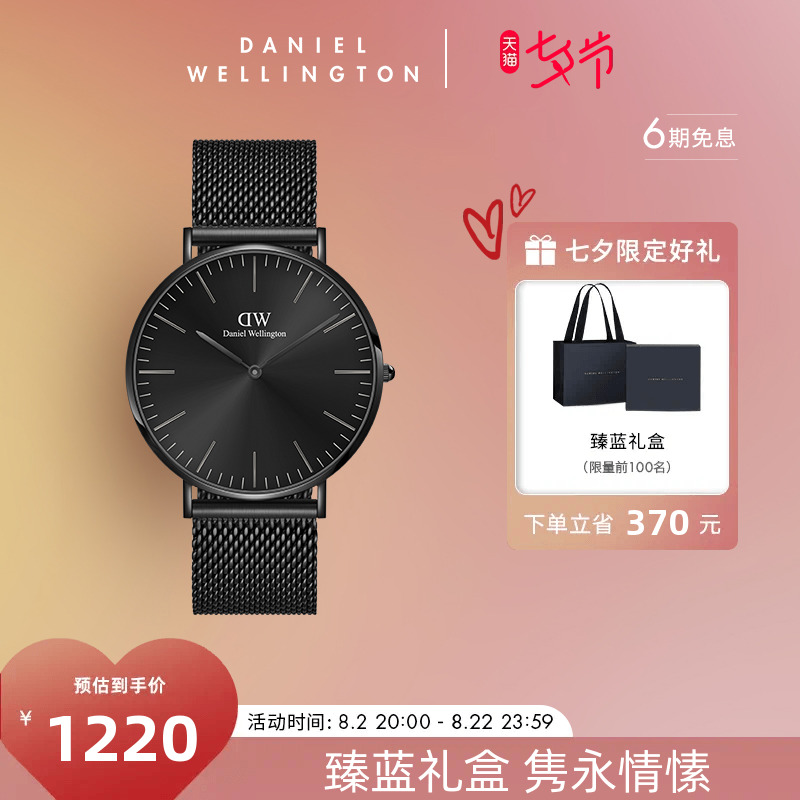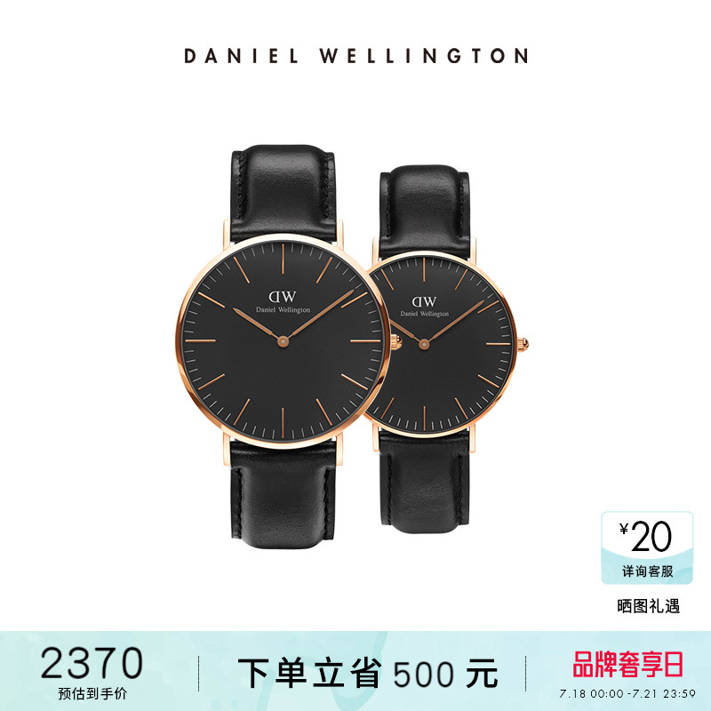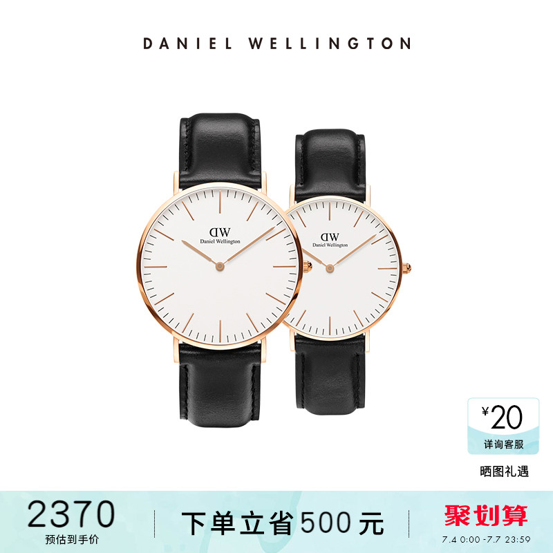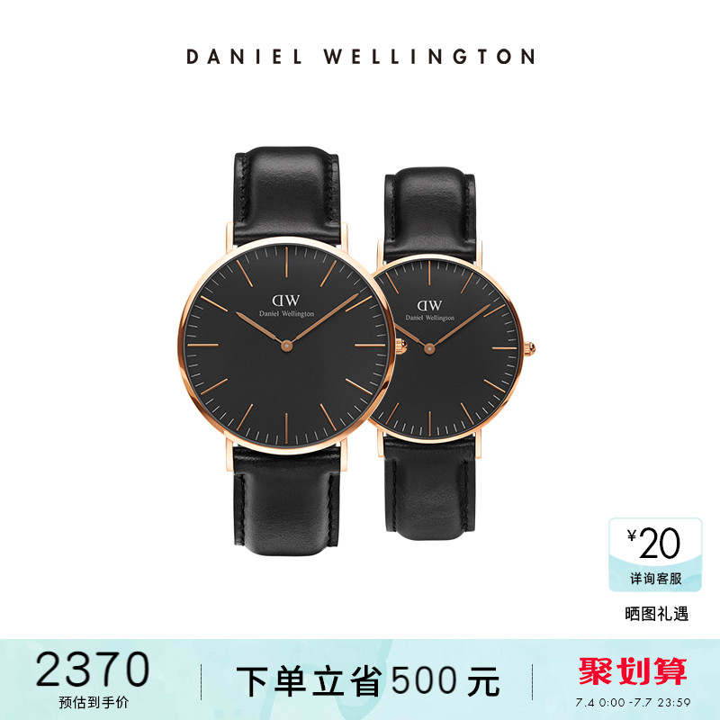 券 500元销量1dw手表情侣对表CLASSIC系列酷黑皮质表带对表40&36mm丹尼尔惠灵顿