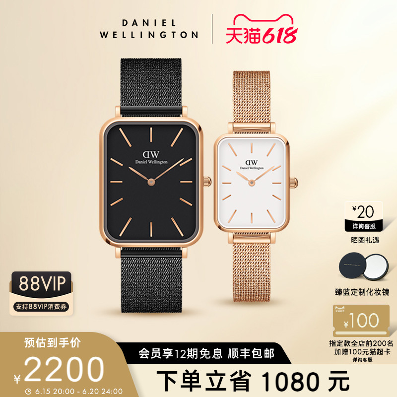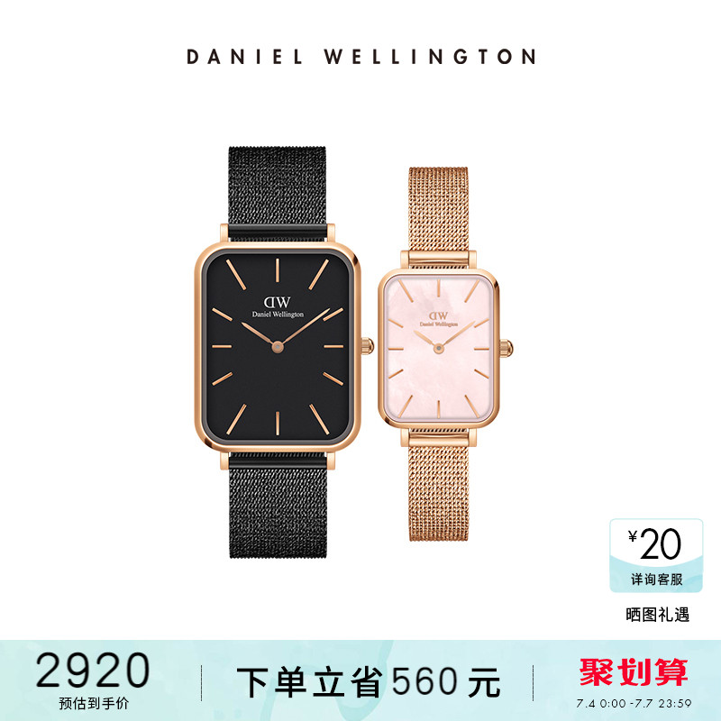 券 600元销量2dw手表情侣对表 QUADRO系列复古方盘对表男女 丹尼尔惠灵顿