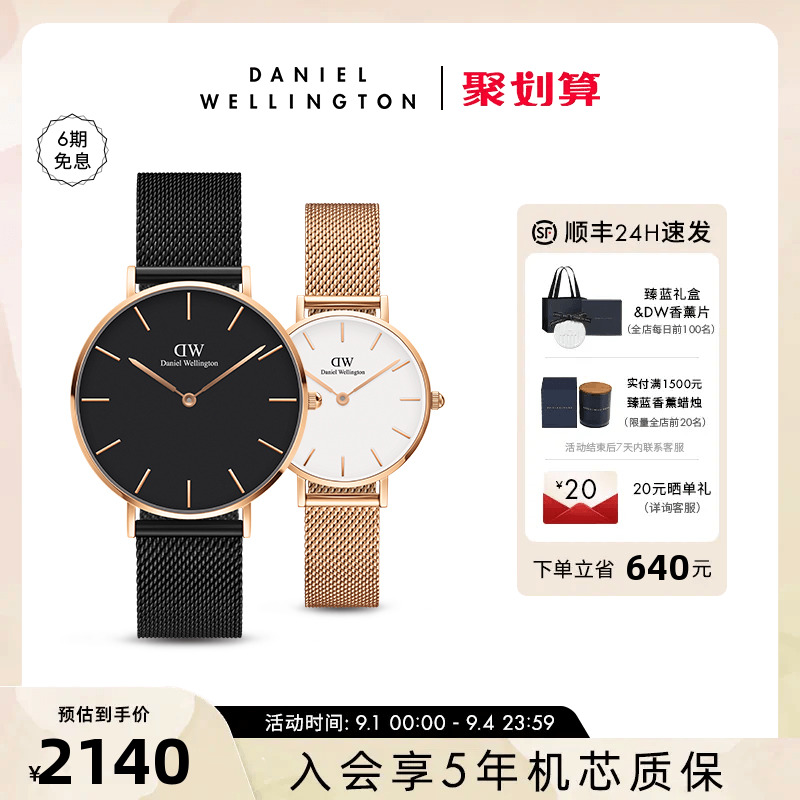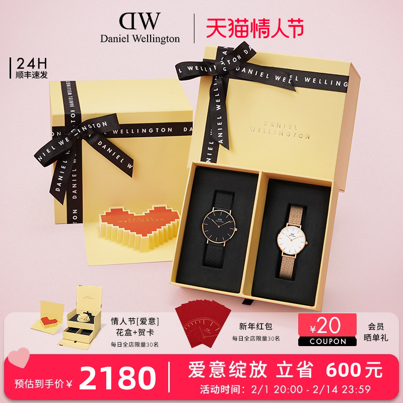 券 350元销量1[情人节礼物]DW情侣手表一对 PETITE轻奢情侣对表 简约流金腕表