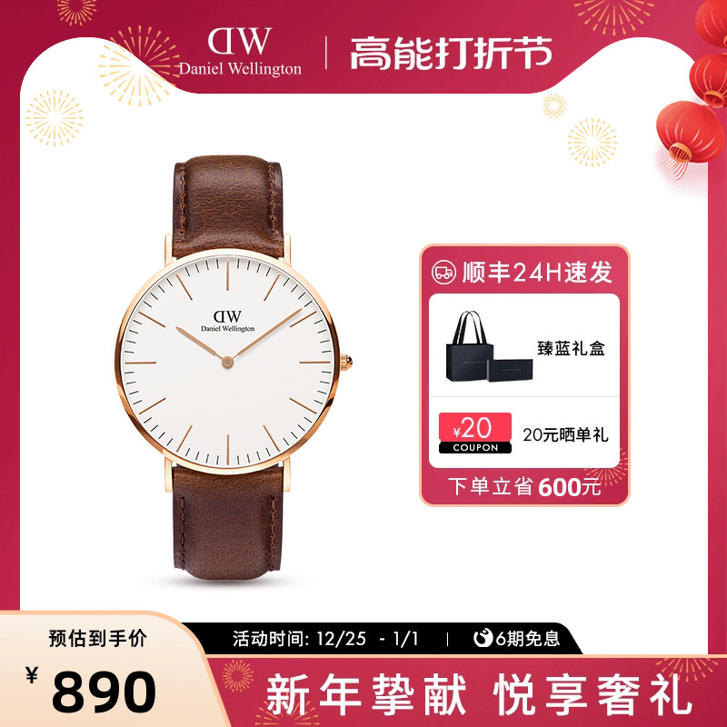 券 550元销量9【限时5折】dw手表 CLASSIC系列经典男表皮质腕表40mm石英表男款