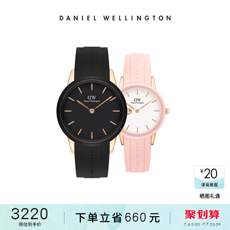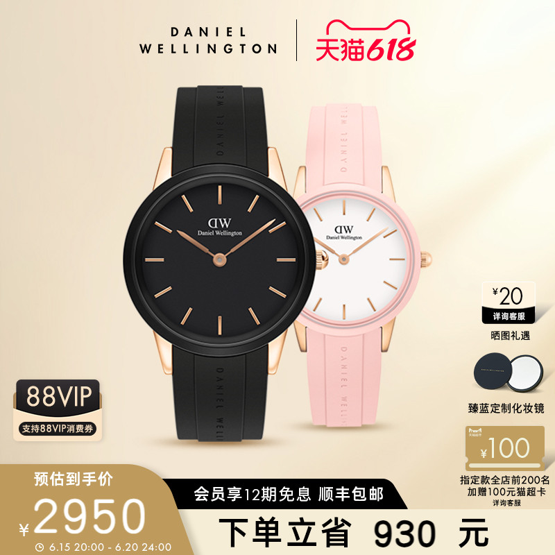 券 940元销量4dw手表情侣对表ICONIC系列潮酷柔韧氟橡胶32&40mm 丹尼尔惠灵顿