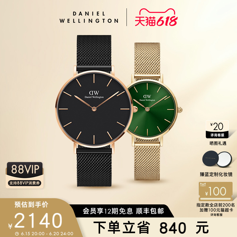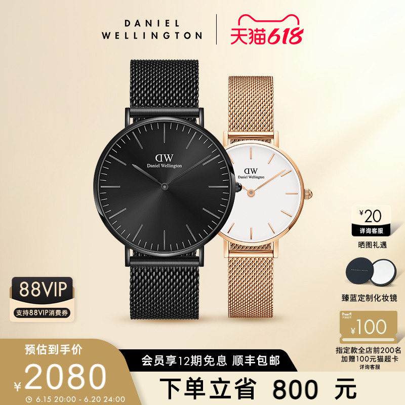 券 360元销量50【新品】dw情侣对表 钢带石英男女手表40&28mm丹尼尔惠灵顿旗舰店