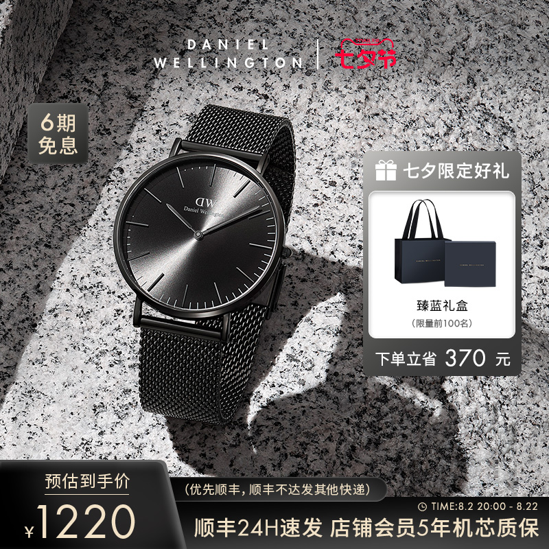 券 370元销量300【七夕礼物】dw手表男 CLASSIC幻影系列钢带石英表男表2023新品
