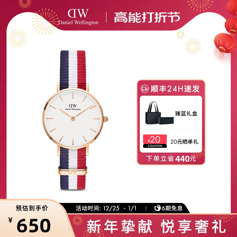 券 330元销量1【6折秒杀】DW手表女 28mm女表英伦学院风织纹石英表丹尼尔惠灵顿