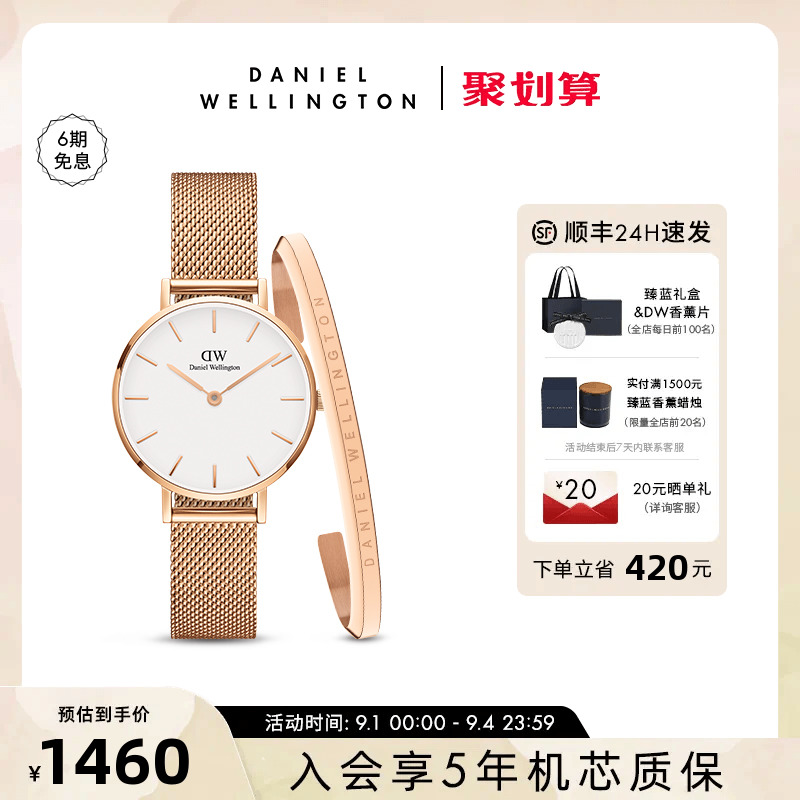 券 320元销量2dw手表女 PETITE系列优雅小圆表小双环手链套装24mm 丹尼尔惠灵顿
