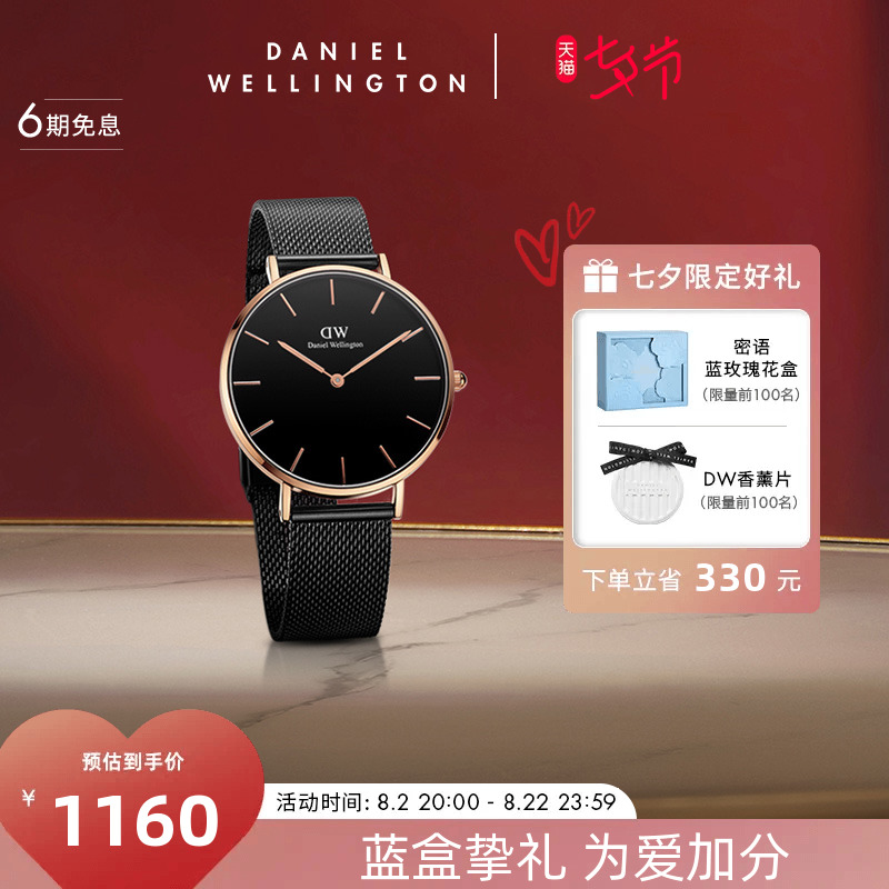 券 340元销量50[情人节礼物]DW情侣手表一对 PETITE轻奢情侣对表 简约流金腕表
