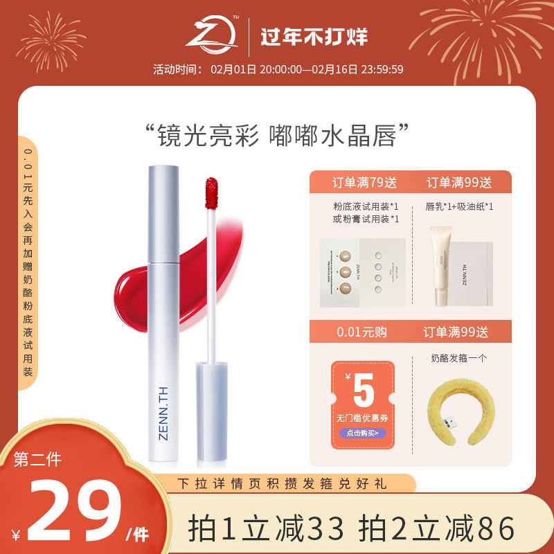 券 33元销量10ZENN.TH/zennth怦然心动镜光染唇露镜面唇釉水光唇彩唇蜜染唇液