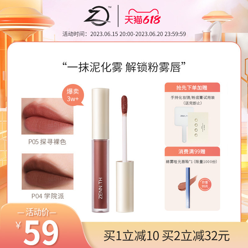 券 33元销量10ZENN.TH/zennth颜料系列唇泥丝绒哑光雾面平价口红唇釉唇蜜唇彩