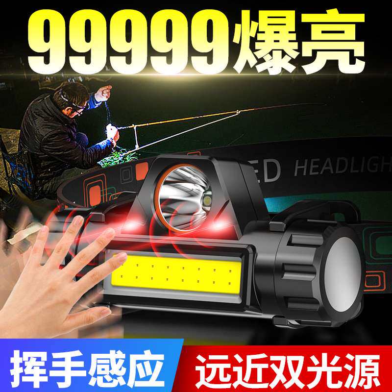 券 5元销量1000头灯强光充电超亮超长续航钓鱼专用头戴式照明感应夜钓手电筒户外