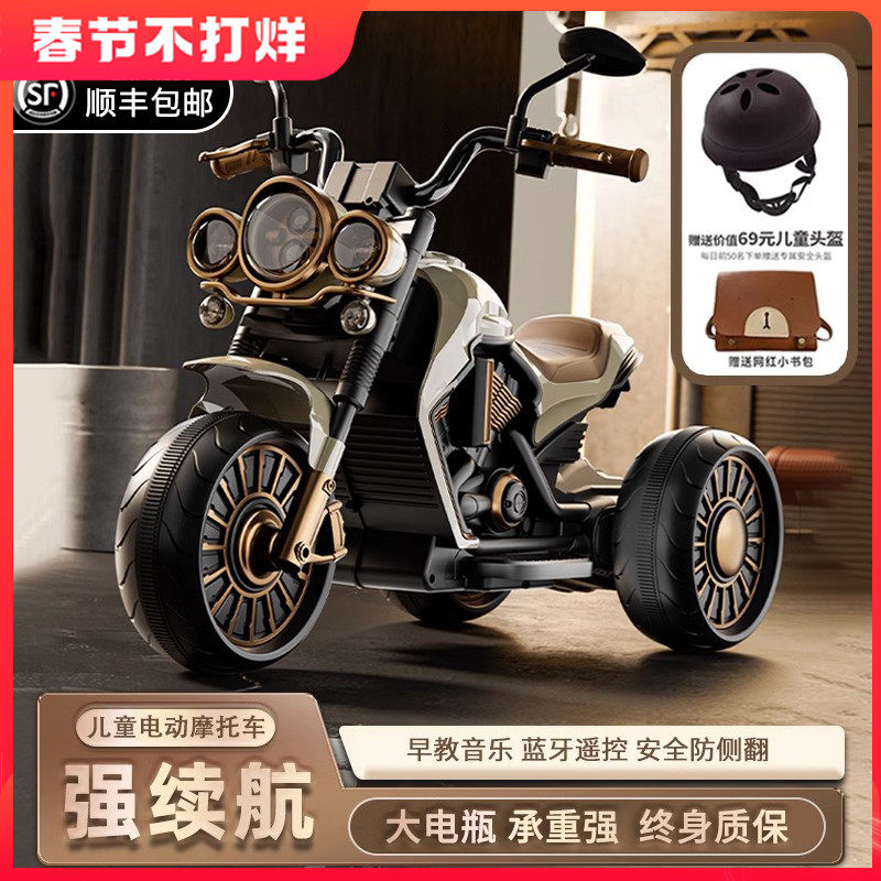 儿童电动摩托车三轮车男女孩宝宝电瓶车小孩可坐人充电遥控玩具车