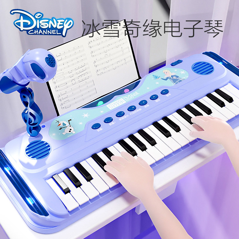券 10元销量100冰雪奇缘电子琴儿童女孩初学者迪士尼乐器玩具小钢琴可弹奏带话筒