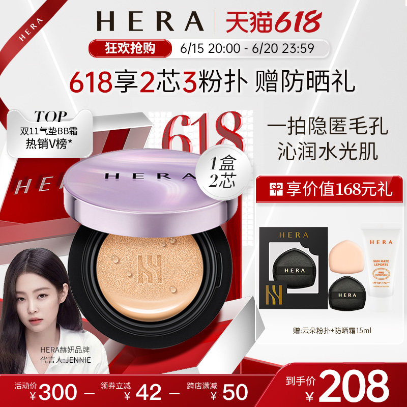 券 51元销量100HERA赫妍卓然无瑕致润气垫粉底液bb霜 遮瑕保湿防晒持